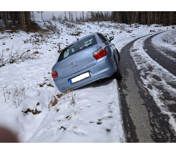 Značka/model: Citroën/C-Elysée Město: Vodňany Ulice: - Komentář autora: Libějovické Svobodné Hory (u Vodňan), cesta na kopec Svobodná hora, která je už dole uzavřená zákazem vjezdu. Někdo si minulý týden evidentně chtěl vyjet zákazem nahoru a udělat si piknik. Na namrzlé silnici mu to, podle vyjetých a vyšlapaných stop, ustřelilo a sedl si autem na břicho a bez techniky se ven asi nedostal. Když si to může dovolit ... :-D