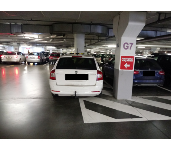 Značka/model: Škoda/Octavia Město: - Ulice: OC Letňany Komentář autora: Parkovací místo si udělal málem i zbořením sloupu, o který opřel čumák...