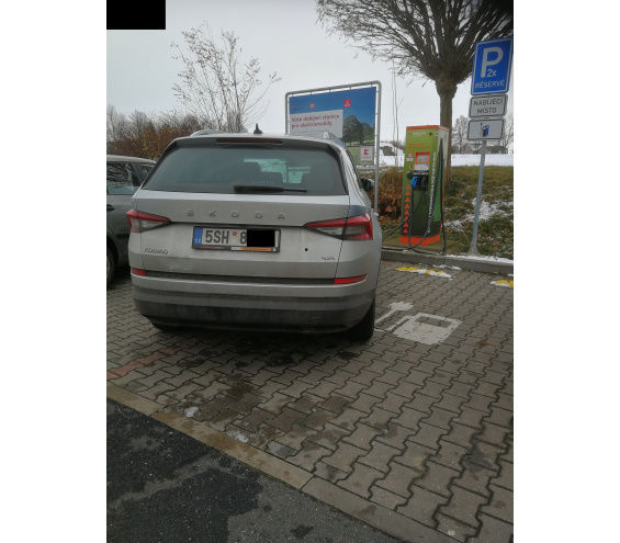 Značka/model: Škoda Město: Kolín Ulice: u Kauflandu Komentář autora: Jeden "intelgent", blokuje dokonce dvě místa pro elektromibily najednou