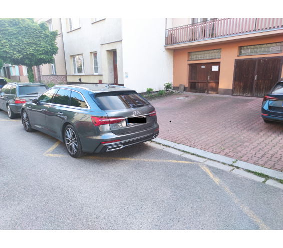 Značka/model: Audi/A6 Město: Pardubice Ulice: - Komentář autora: Zablokování 2 garáží a jednoho parkovacího místa, stání na žluté čáře, kde je parkování zakázáno. Problém téměř každý den..
