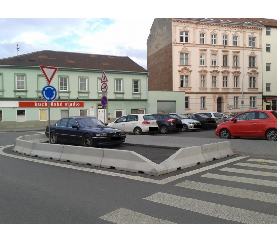 Značka/model: BMW Město: Brno Ulice: Zahradnická Komentář autora: Nebylo místo na zaparkování, tak frajer projel skrz parkoviště za sebou, přejel chodník a zakotvil mezi betony, které vymezují kruháč :D