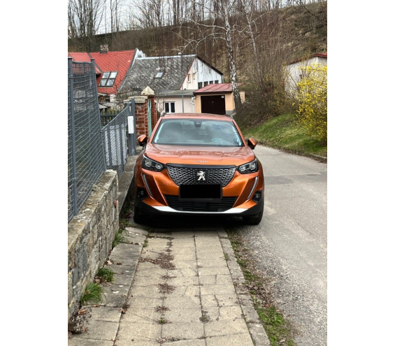Značka/model: Peugeot/2008 Město: Jihlava Ulice: Pražská Komentář autora: Takhle neparkuje poprvé. A chodci ho asi mají přeletět.