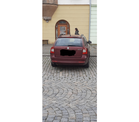 Značka/model: Škoda Město: - Ulice: nám. T. G. Masaryka 37/19 Komentář autora: Tady ten pán vždy takhle krásně odstaví své vozidlo, které nehnutě stojí víc jak 4 dny. Když odjede a vrátí se zpět. Tak opět stojí vždy stejným způsobem, aby mělo co nejvíce místa pro sebe.